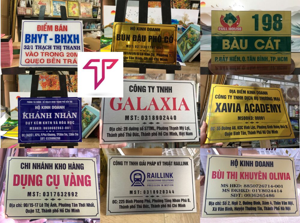 Bảng công ty, biển cty nhiều mẫu bảng số nhà in UV trên mica, alu inox cực kỳ sắc nét thiết kế yêu cầu (GIAO HỎA TỐC))