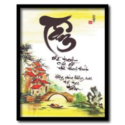 Tranh thư pháp Chữ tâm, ơn thầy, chữ phúc, chữ đức thư pháp treo tường đẹp, tranh khung a3, a4 treo tường giá rẻ