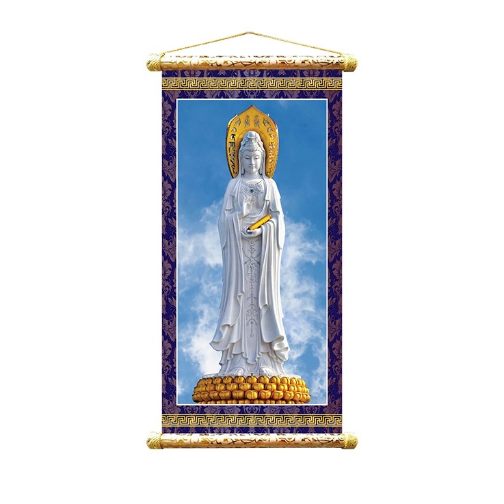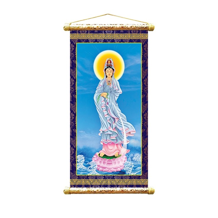 • Tranh treo sáo trúc được in trên chất liệu vải, ưu điểm không bay màu theo thời gian, trọng lượng nhẹ, nhỏ gọn, có thể dùng lâu dài để thờ cúng, trang trí.