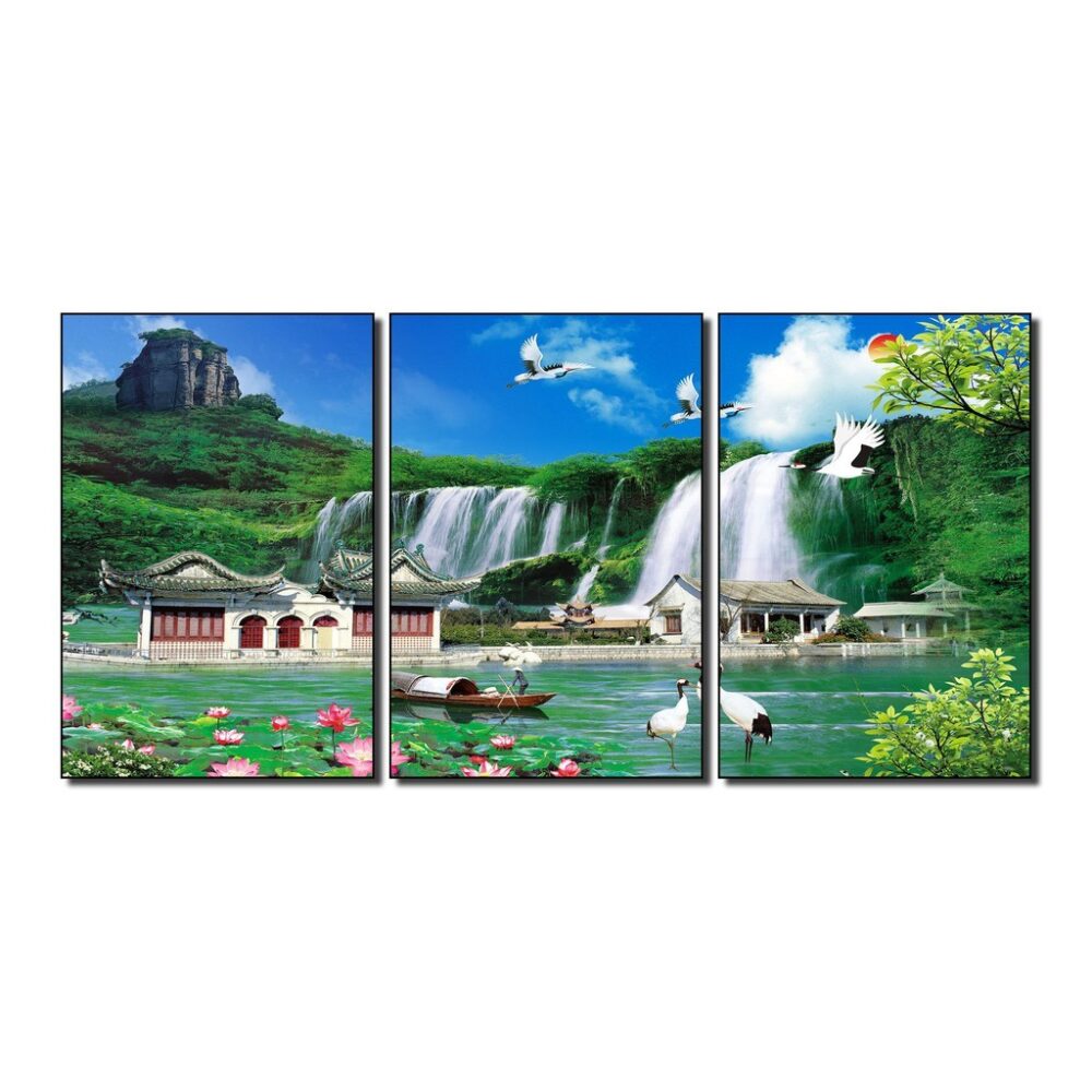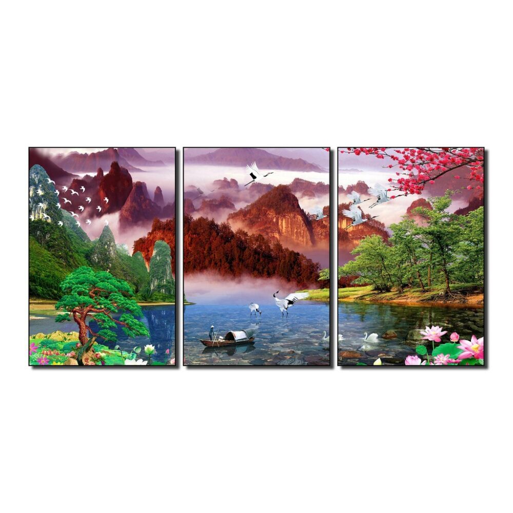 Review Tranh phong cảnh treo nhà hàng, tranh bộ ghép treo tường phong cảnh đồng quê, tranh phong thủy treo phòng khách