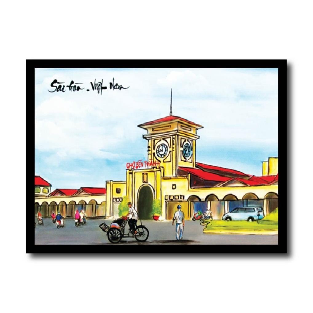 Review Tranh thư pháp quê hương Việt Nam, chợ bến thành, phố cổ, nhà thờ đức bà, sài gòn, hà nội. Tranh làm quà tặng lưu niệm.