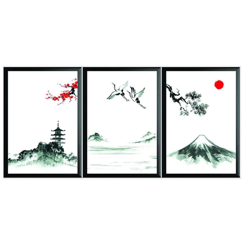 Review Tranh treo tường cổ điển, tranh treo tường mẫu mới, tranh treo phòng khách bộ ghép 3 tấm khung A3, A4 sang trọng/