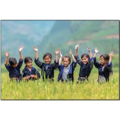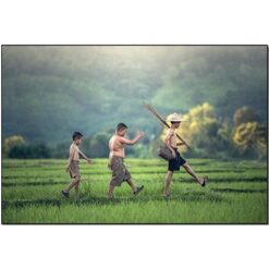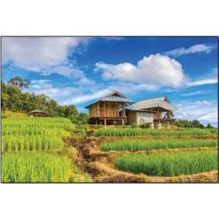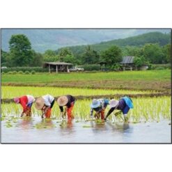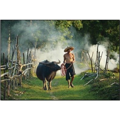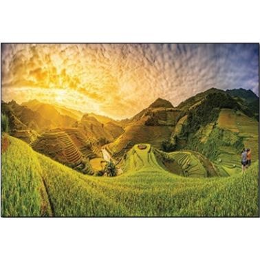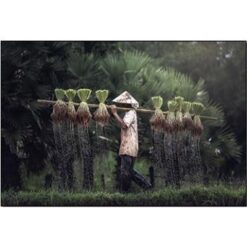 Review Treo thiên nhiên, con người ngoài đồng lúa, tranh phong cảnh mặt trời lặn xuống núi, tranh đẹp việt nam